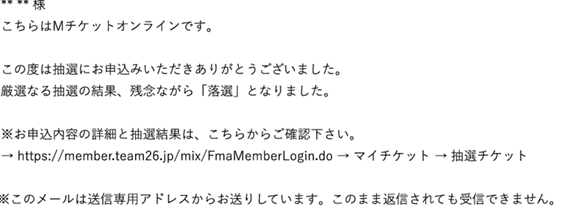 実際、落選者に送られたメールには「厳正なる抽選の結果」と書かれていました。しかし、抽選にすらかけられていない人が存在するのです。この通知は事実と異なります。