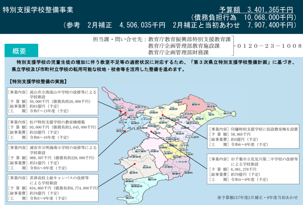 特別支援学校の過密化問題が、旧上総高校を改修、一部新設することで改善されます!総事業費は76億円、地元に経済効果がでるように提言していきます。